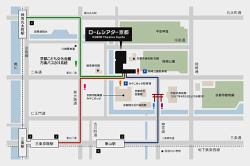 ロームシアター京都・みやこめっせ前」下車すぐ - ■ 市バス5系統、100系統、110系統「岡崎公園 美術館・平安神宮前」下車徒歩約5分