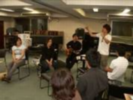 「祭典ぷれぜんてーしょん」では、普段は郷土のサークルで太鼓を叩いていたり、ダンスを頑張っている青年をはじめ、新日本スポーツ連盟の仲間も参加。これまでの祭典はどんな様子だったのか?青年たちはどんなステージを創ってきたのかを知るために祭典DVDを見ました。その感想で「長野での祭典がビッグハット(4面客席)で行われているのを見て、同じつくりの有明コロシアムで歌っている姿が想像できた」という人もいました。昨年、奈良祭典で青年を盛り上げる中心となっていた馬場さんの経験も聞きながら、イメージがふくらんでいきました。